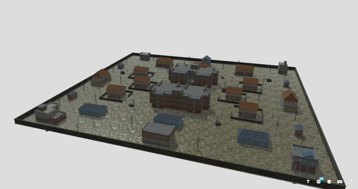 It’s created by combining several free models from Sketchfab, and it can be used for a shooter-style game — something similar to PUBG.