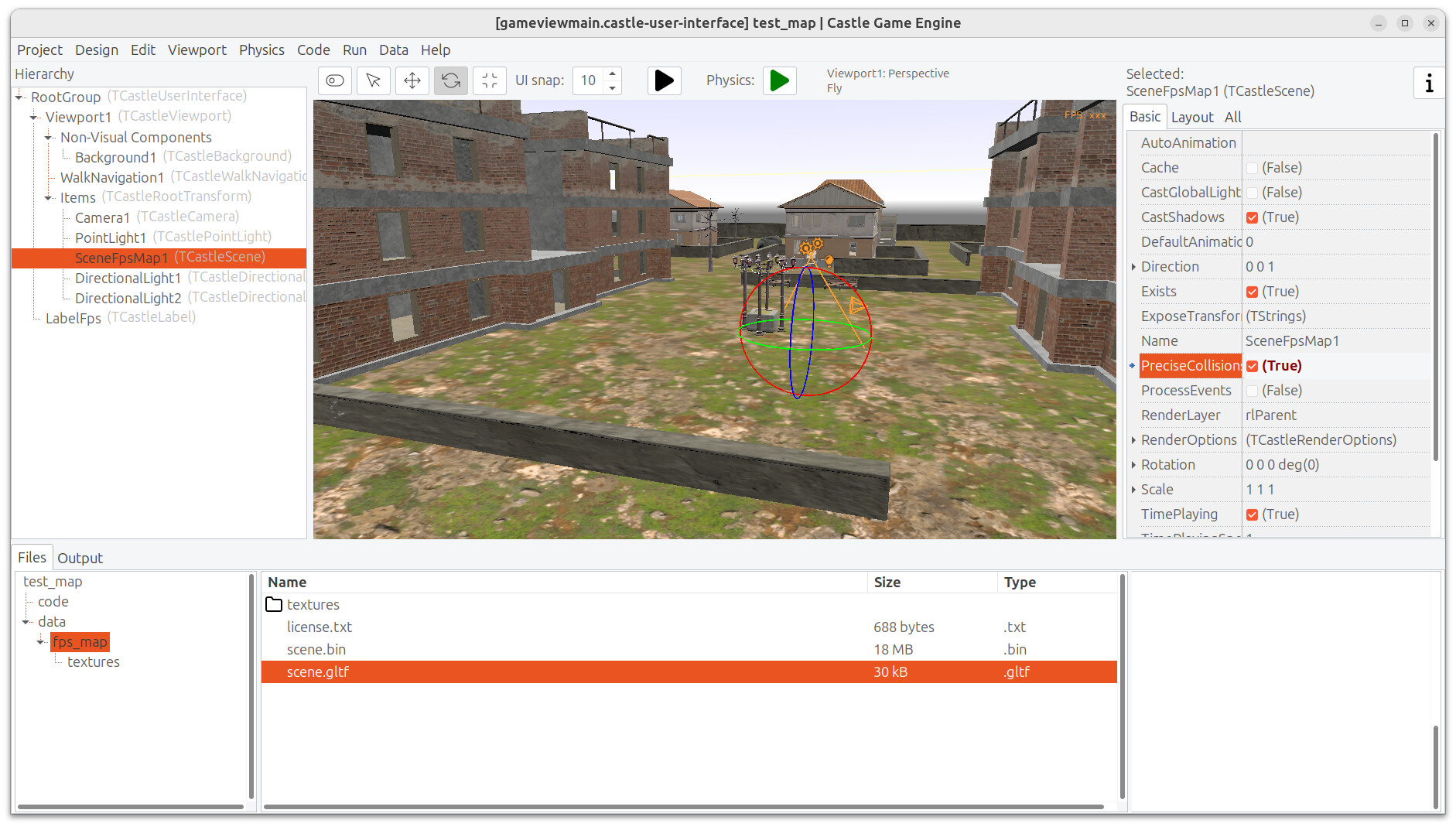 As a test, I made a simplest CGE project using it, so that others can also use it as a starting point even easier: GitHub - michaliskambi/test-fps-map . The map from @hal09 is placed in a viewport as TCastleScene (with PreciseCollisions=true), with FPS walking using our TCastleWalkNavigation, with a very simple “bright” lights setup.