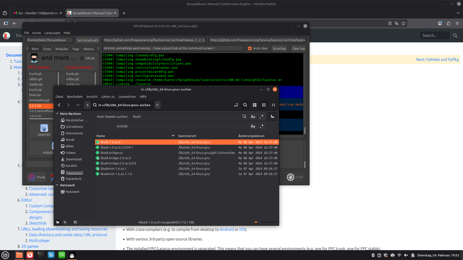 The libgtk-x11-2.0.so.0 is provided by other package that is almost for sure already installed on your system (esp. since you run fpcupdeluxe which itself uses GTK 2). On Ubuntu it is libgtk2.0-0t64, in general it’s called like libgtk2.0* but without any -dev suffix.