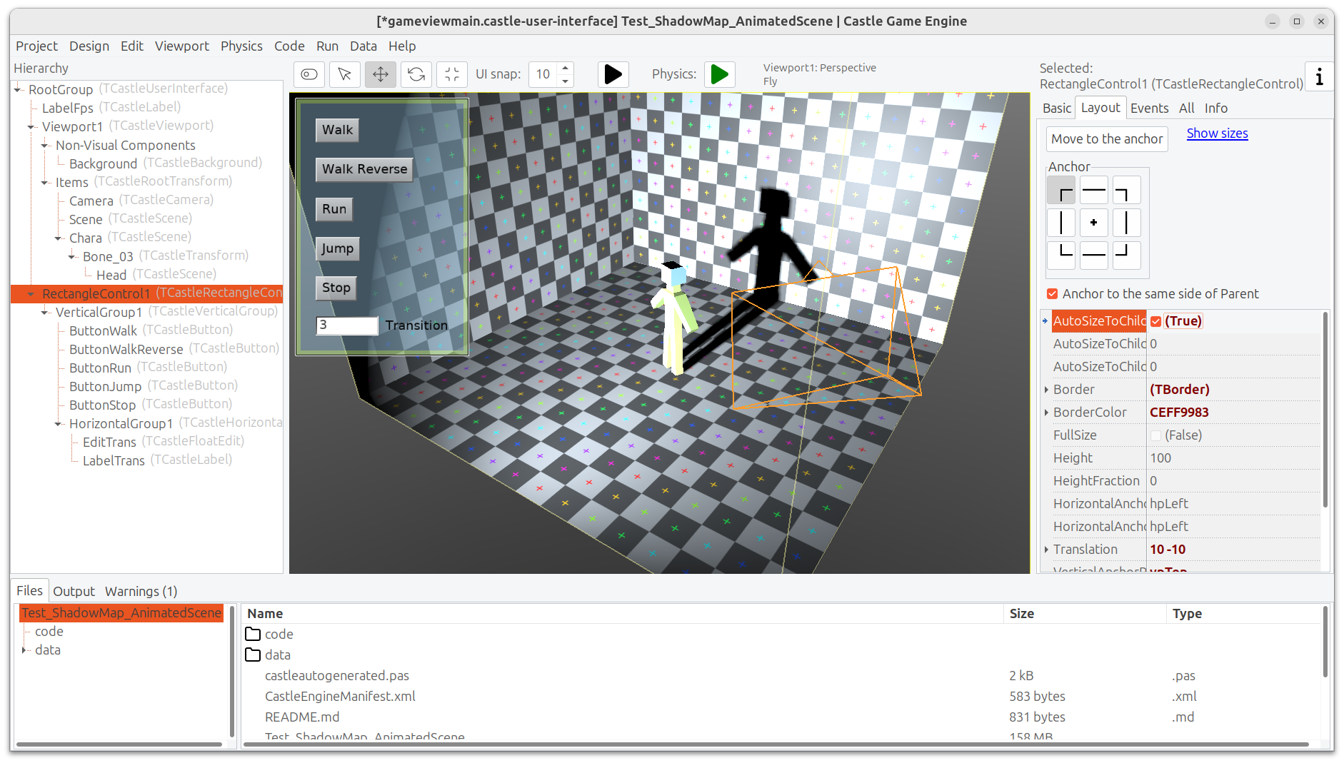 I downloaded the latest version of CGE and discovered a problem with the shadow map. For some reason, the shadow from an animated TCastleScene isn’t updating. However, if I add any light source, such as a TCastlePointLight, with the Shadow parameter enabled in GameView, the shadow map starts updating.