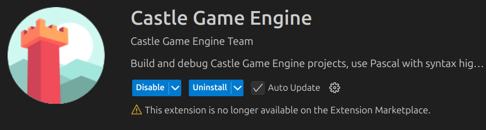 Hm. I also see this message “This extension is no longer available on the Extension Marketplace.”, for “Castle Game Engine” and lots of other extensions in my VS Code… I think this happened for me after upgrading VS Code today, I think I didn’t see this message yesterday.